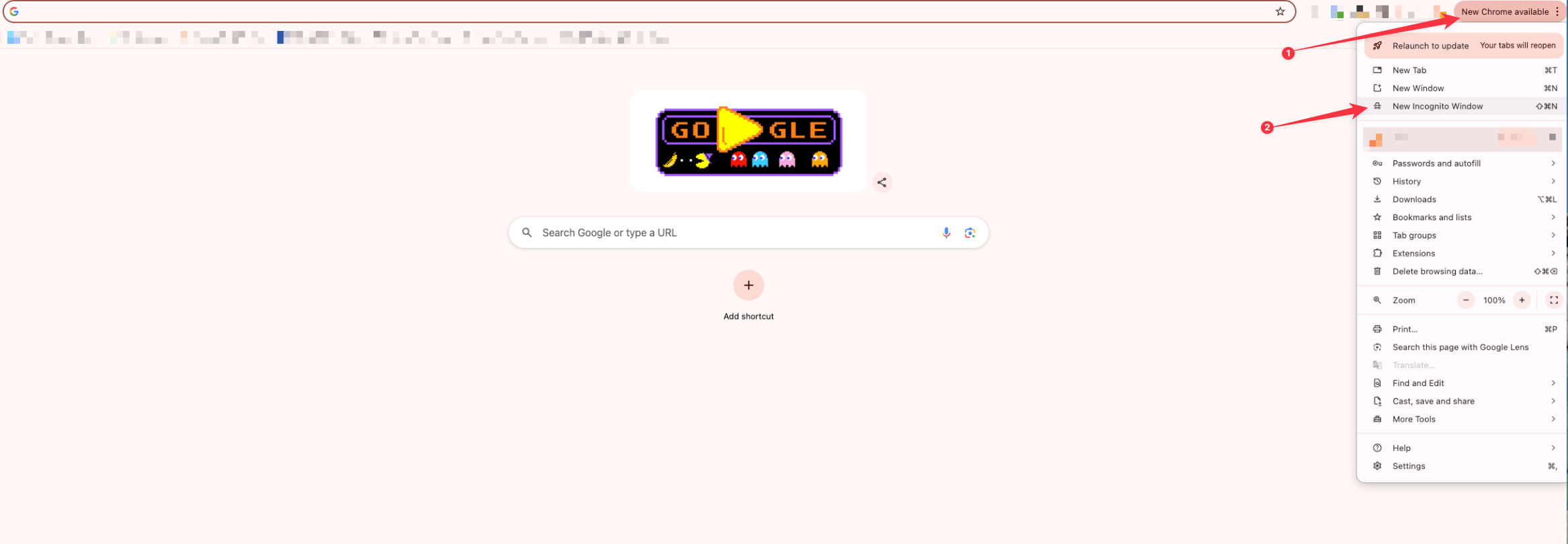 - Tryk oppe i højre hjørne og vælg "new incognito browser".
