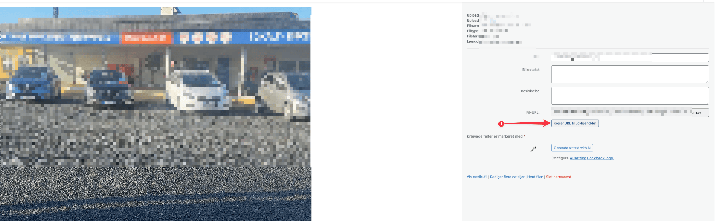 - Tryk ind på den fil du lige har uploadet og kopier fil URL. Den skal du bruge senere.
