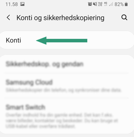 2. Gå til “Konti og sikkerhedskopiering”