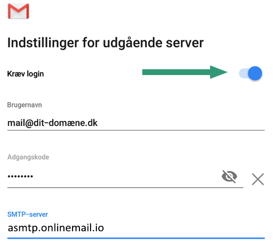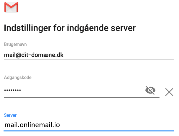 - Brugernavn: email@ditdomæne.dk