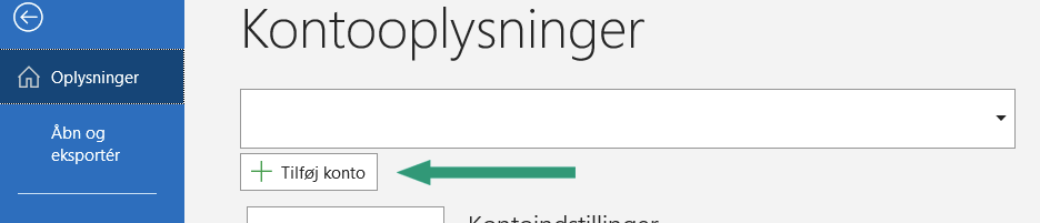Under menuen “Oplysninger” skal du klikke på knappen “Tilføj konto”.