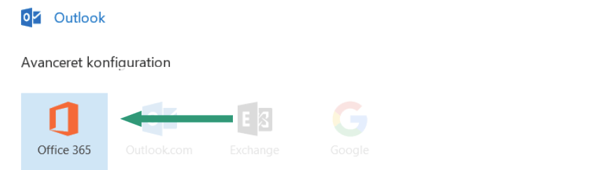 Her skal du vælge “Office/Microsoft 365” som kontotype.