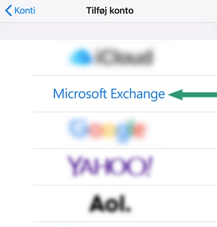 5. Vælg “Microsoft Exchange”