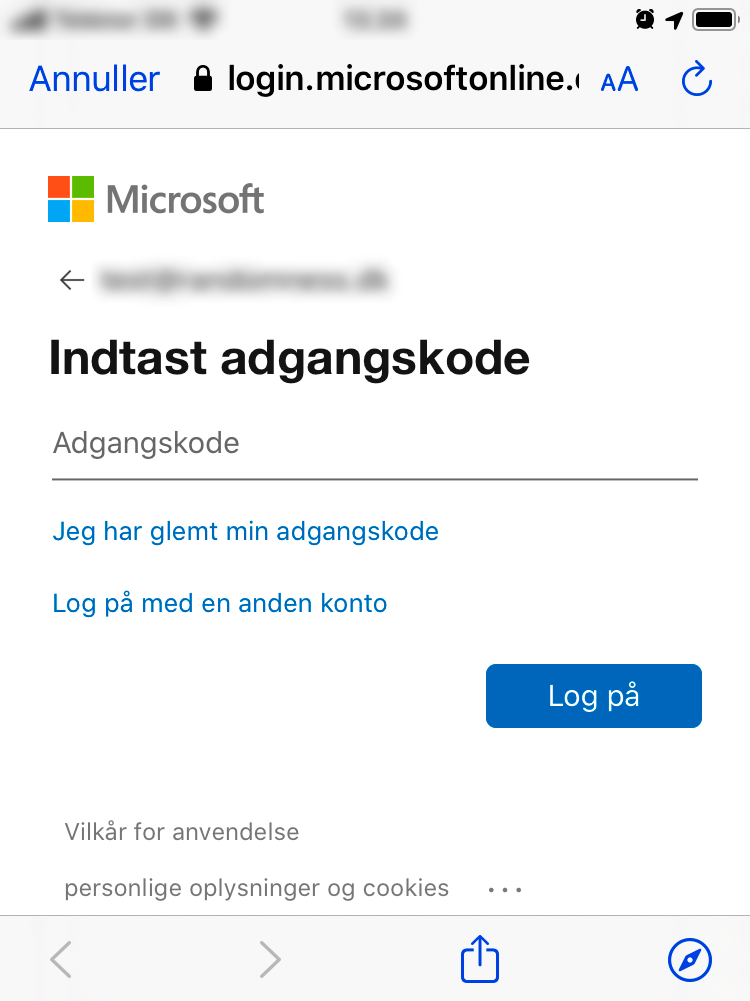 Din enhed åbner nu en Microsoft-login-side.
