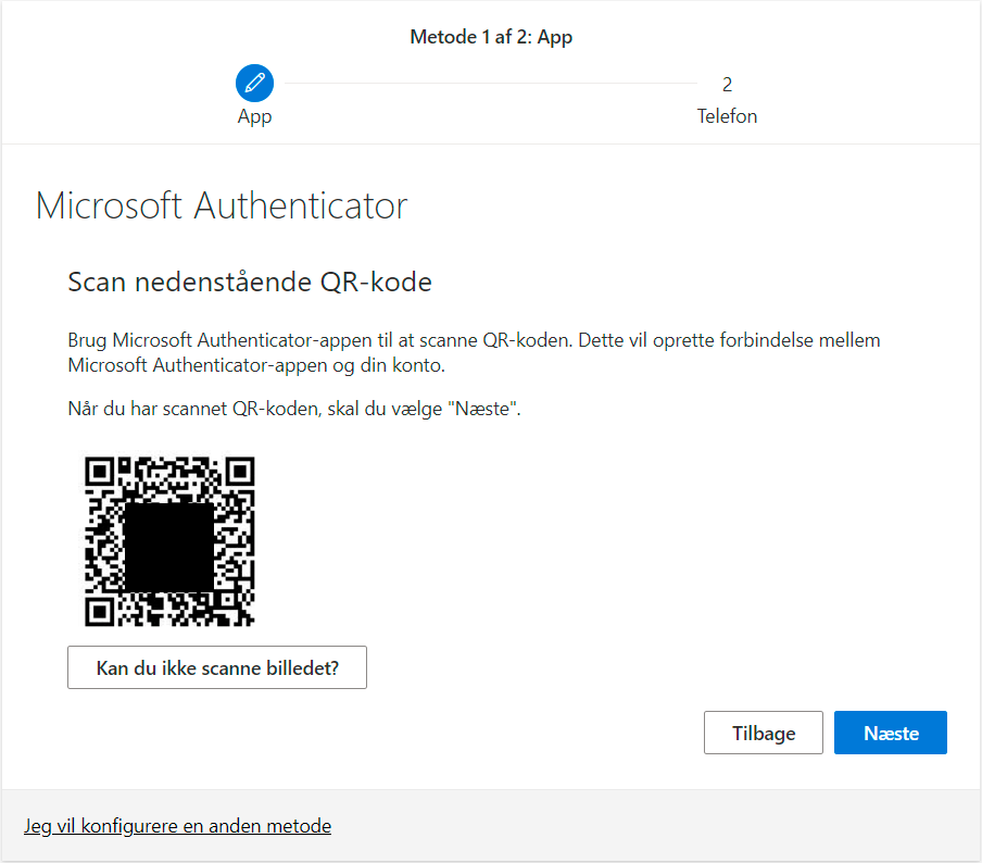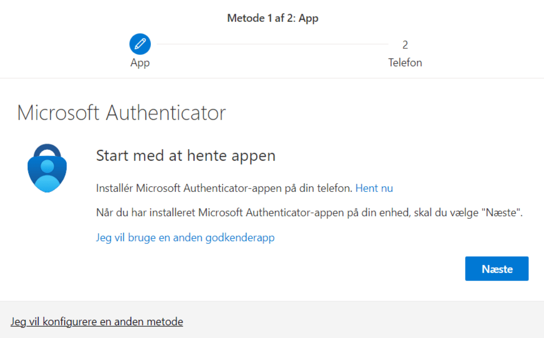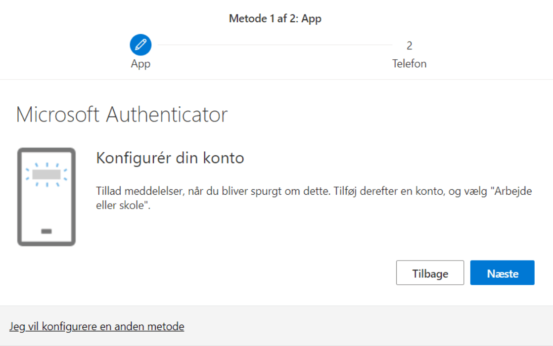 - Her kan du så trykke på at du ikke kan bruge din Authenticator app lige nu