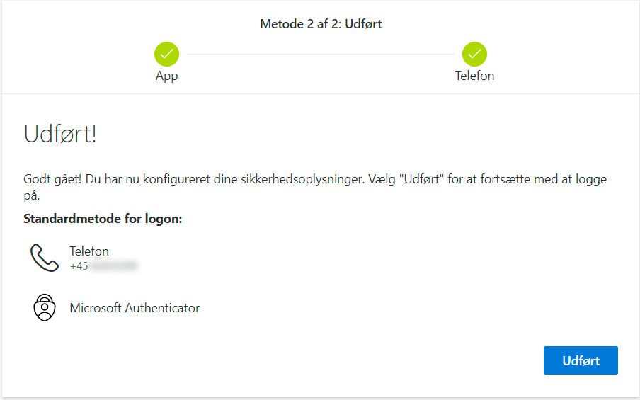 Du har nu aktiveret din konto med Microsoft Authenticator.