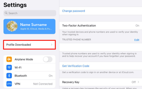 - Øverst vil du se “Profil downloadet” (vises især, hvis du brugte Safari). Tryk på den.