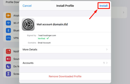- Bekræft – iOS opretter nu e-mailprofilen.